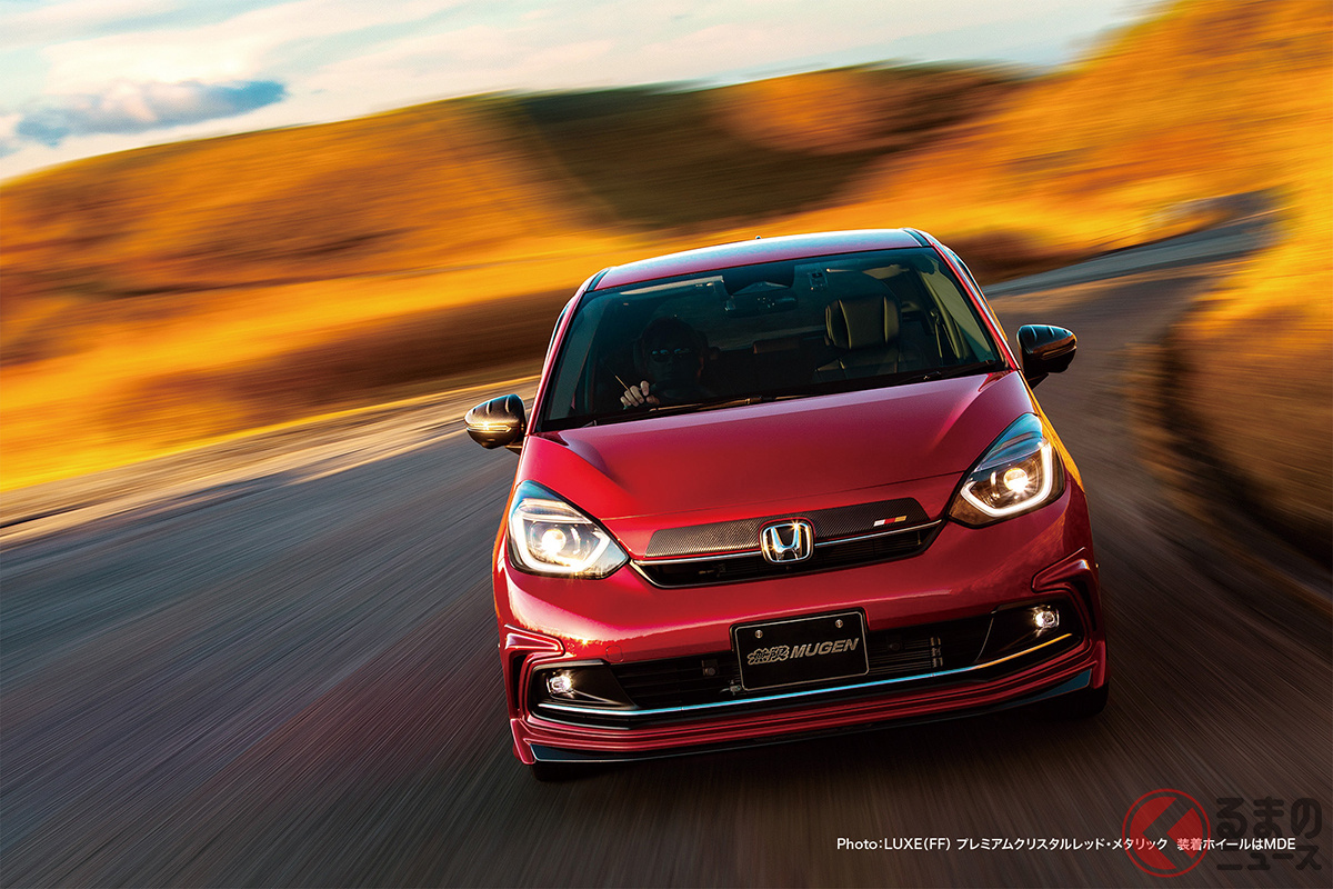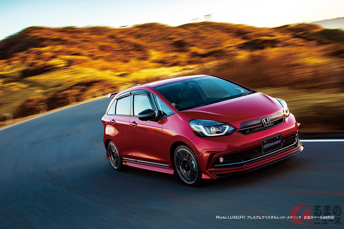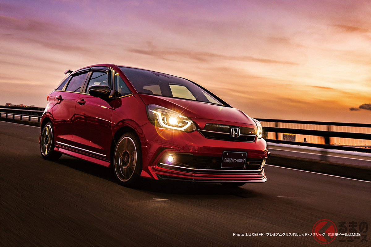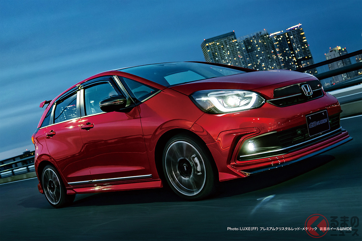 ホンダ「全長4m級コンパクトカー」“超スポーティ仕様”に注目! ワイド感強めな「エアロ」で超カッコいい! スゴい「バイザー」もある「“無限”フィット」カスタマイズアイテムとは