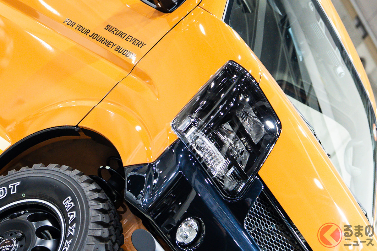 約250万円! スズキ「商用バン”SUV”」!? ちいさなボディの「本格モデル」! 黒いタフ顔&シャコ上げの「プラスライン エブリイ HIGH STYLE」登場