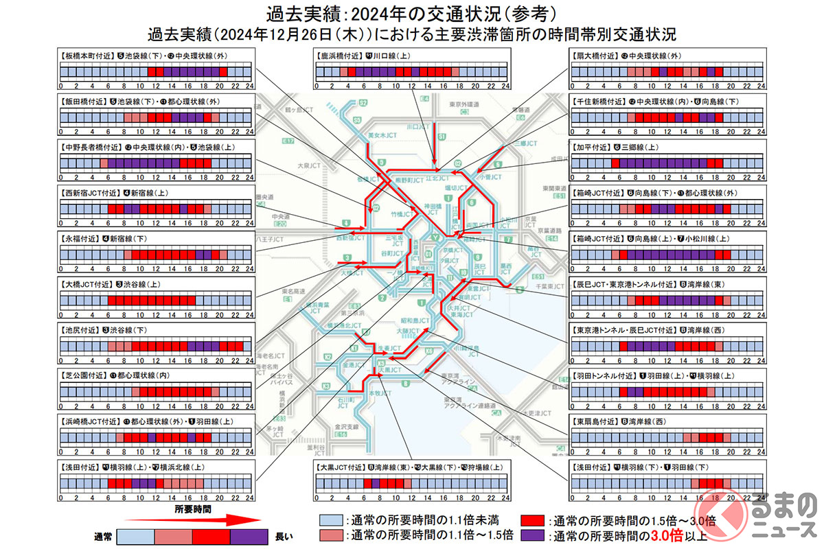 首都高が1年で一番混む「“年末渋滞シーズン”」突入! 「いつもより3倍時間かかります」 全線で「ほぼ丸一日」渋滞 ピークは「19日の金曜日」 特に混雑する路線と時間帯は?