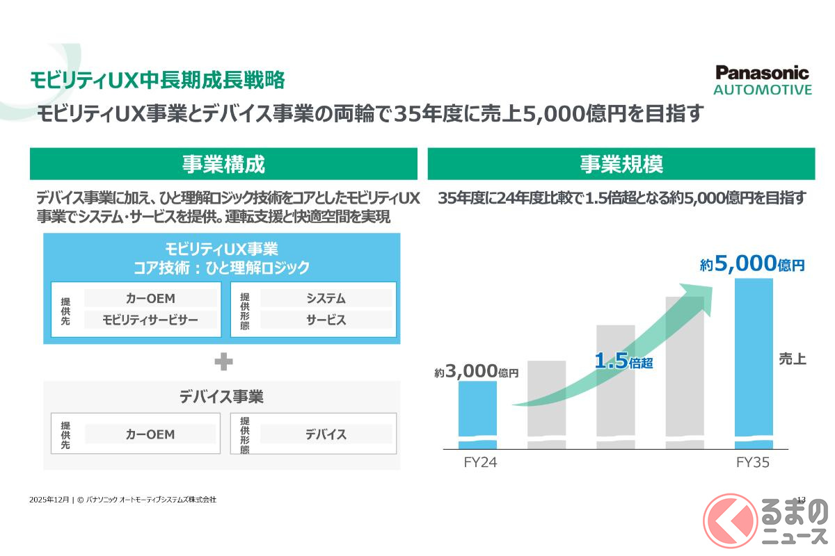 パナソニックオートモーティブシステムズは、2027年4月1日付で社名を「モビテラ」に変更すると発表しました。あわせて公開された「モビリティUX戦略」の詳細では、運転シーンやドライバーの感情を検知し、事故を未然に防ぐ次世代運転支援技術について説明。AIやソフトウェアの力で「移動体験」そのものをプロデュースする企業への変革を加速させます。