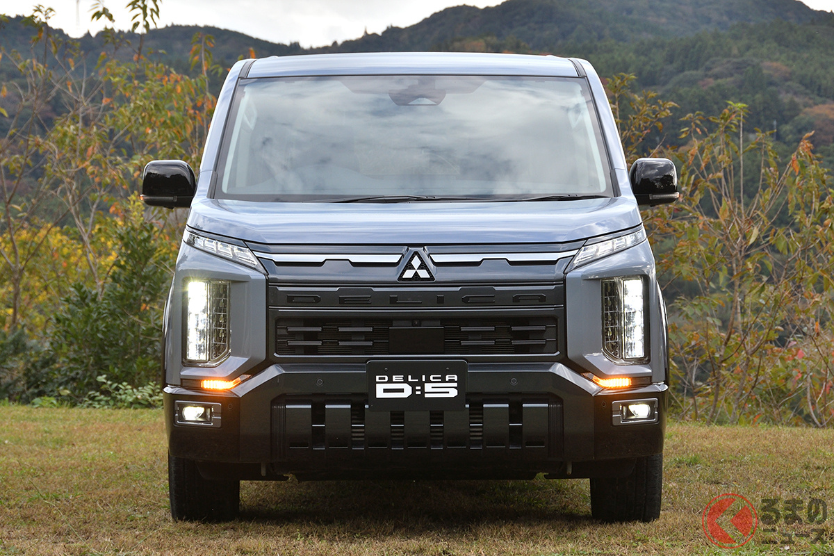 三菱「新型“四駆ミニバン”」発表! 新デザインの精悍ブラックグリル&先進カラーメーター採用! 本格4WD初搭載で走りを強化した新型「デリカD:5」18年目の進化とは!