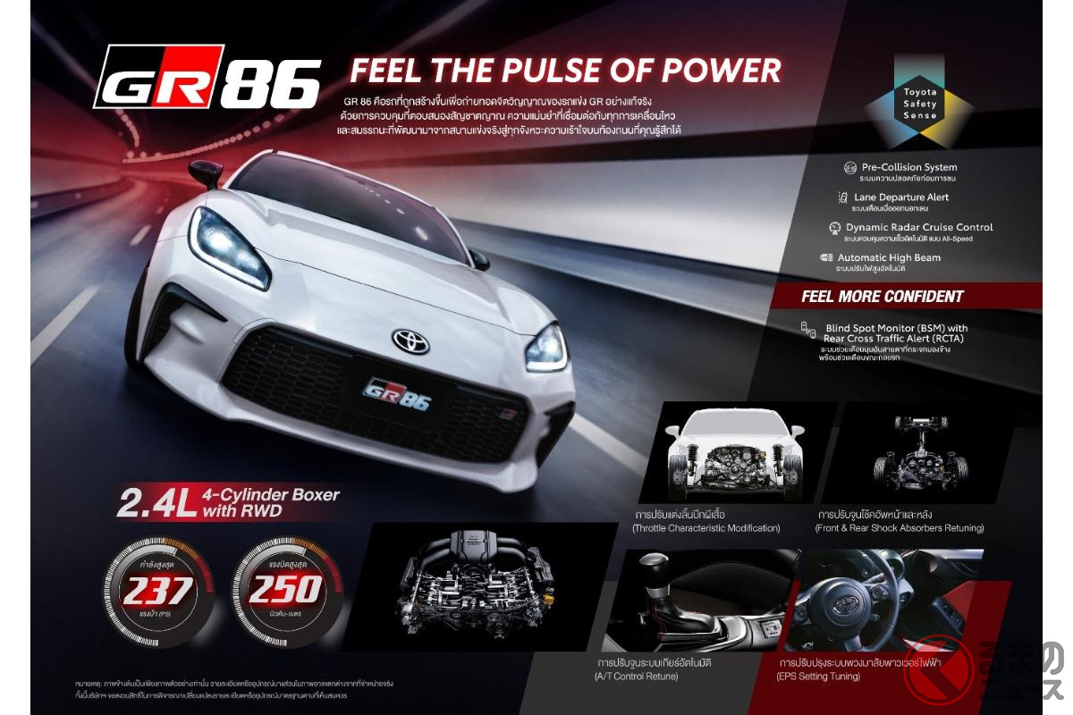 トヨタのタイ法人は2025年11月28日、タイ国際モーターエキスポ2025に、販売停止となっていたピュアスポーツモデル「GR86」を出品し、現地での販売を再開すると発表しました。どのようなモデルなのでしょうか。