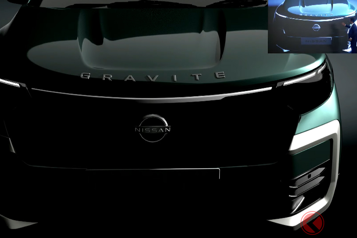 日産のインド法人は、現地生産のうえ2026年3月より発売予定のB-MPV(コンパクトミニバン)について、車名が「GRAVITE(グラバイト)」であると発表するとともに、デザインの一部を公開しました。