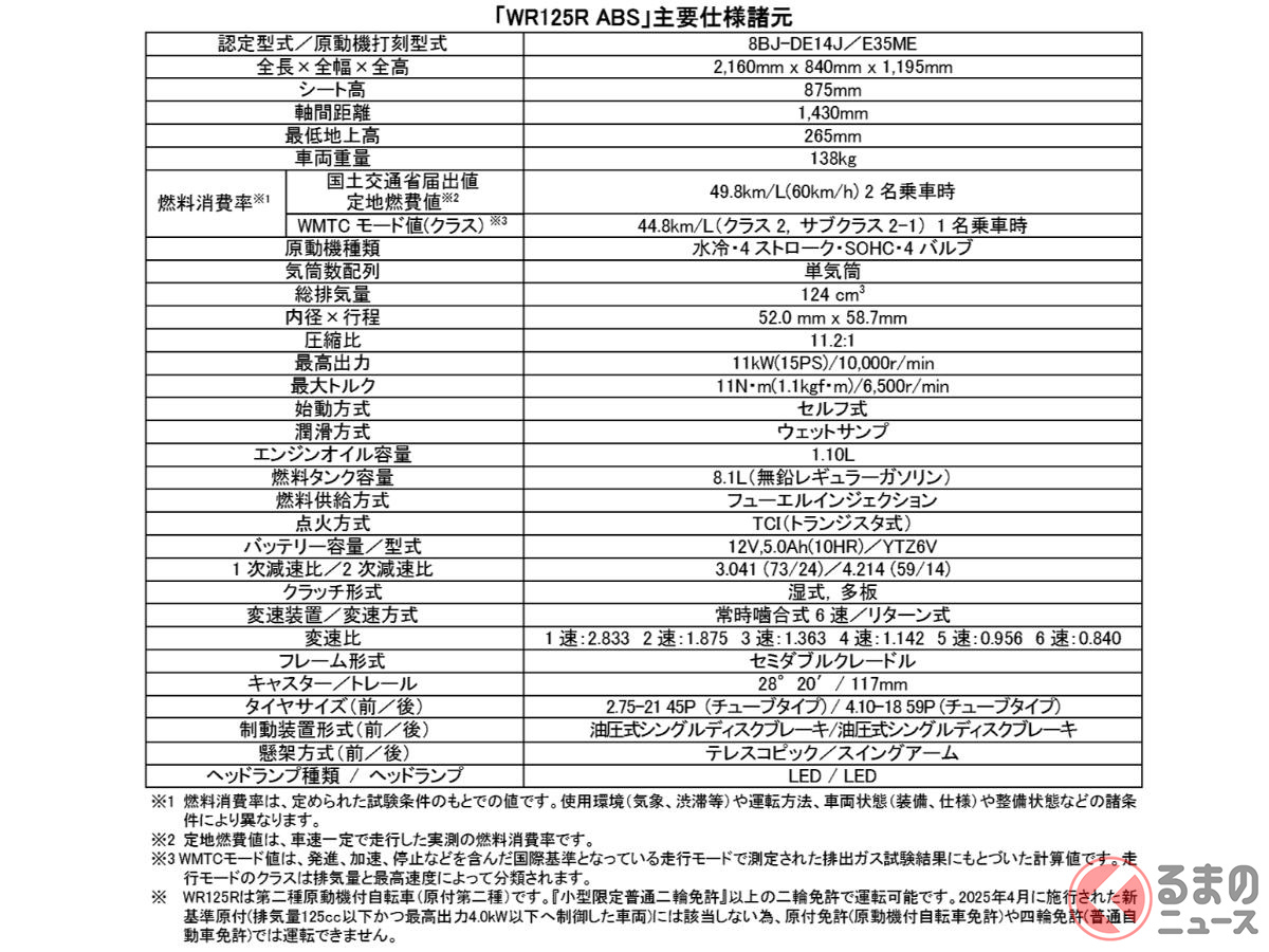 ヤマハは2025年12月18日、新型オフロードバイク「WR125R ABS」を発表しました。2026年1月30日より国内市場にて販売されるといいます。
