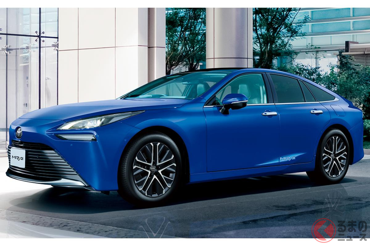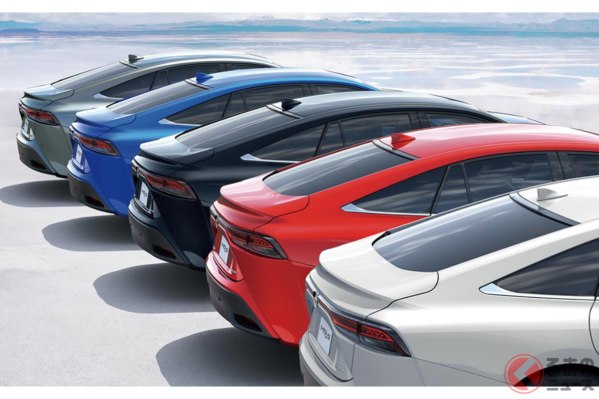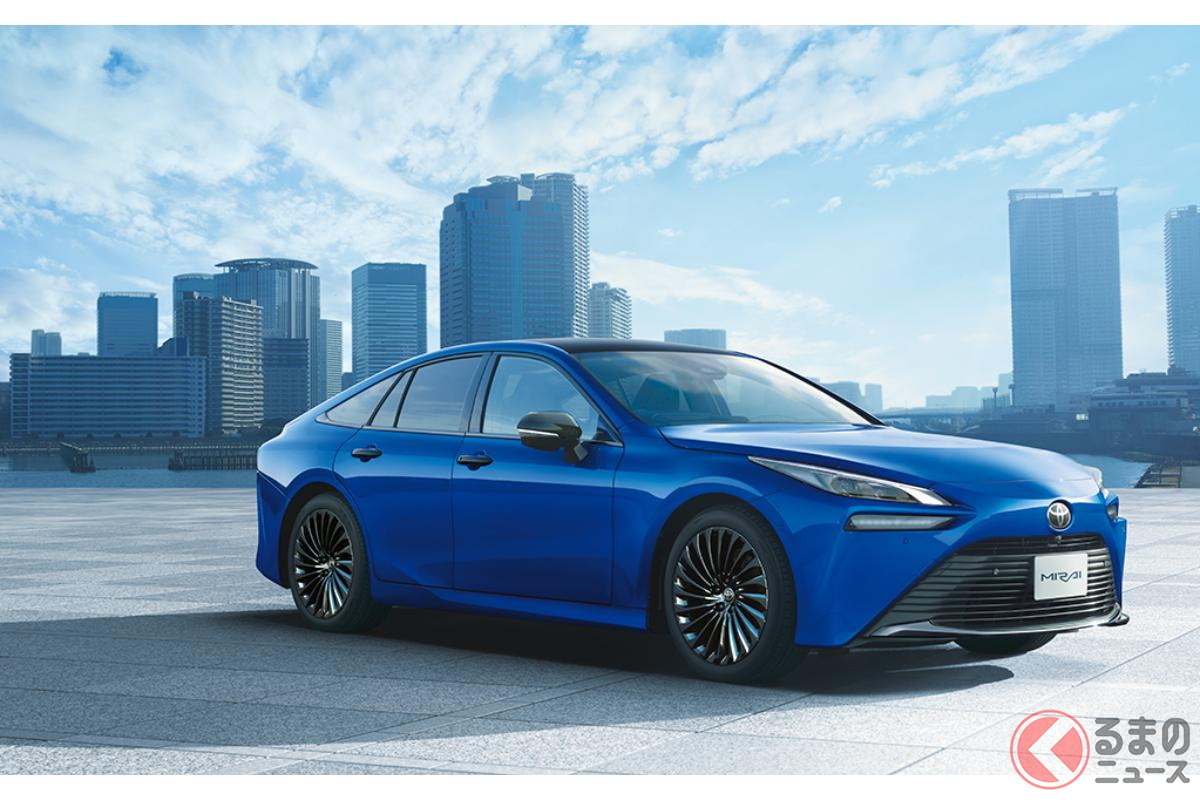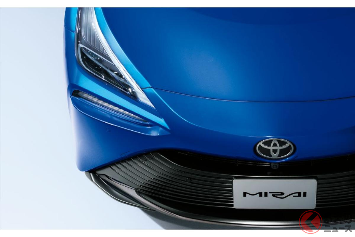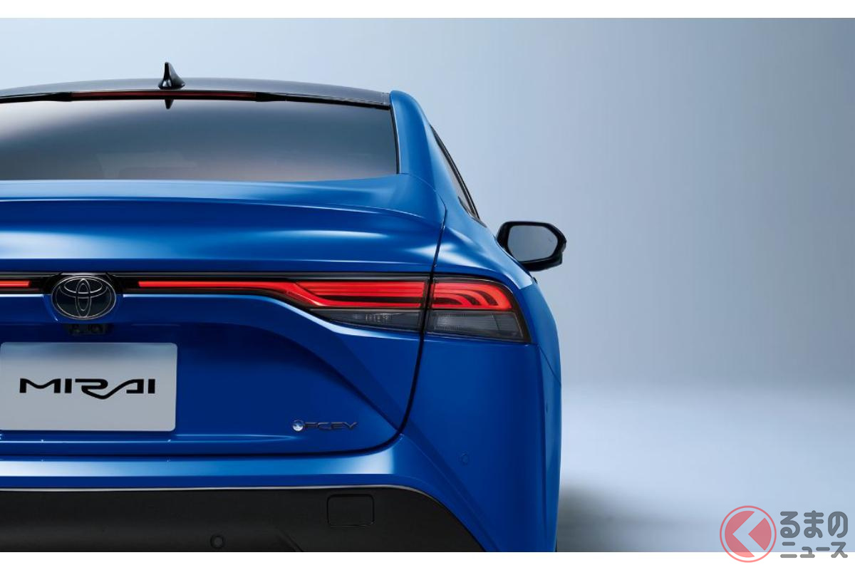 全長5m級! 820万円超えのトヨタ“新”「高級4ドアセダン」発表! FR駆動×美しすぎる「流麗ボディ」採用! 斬新「黒すぎ仕様」も用意する新「MIRAI」一部改良して発売