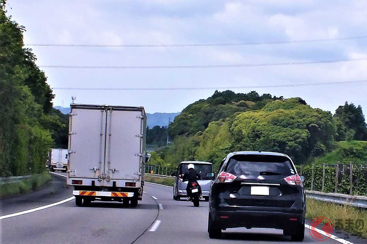ドライバーからもライダーからも非難の嵐!? 「トラックの間をすり抜けるバイクが危なすぎる」「後続車から見てもヒヤッとした」SNSで拡散された声とは