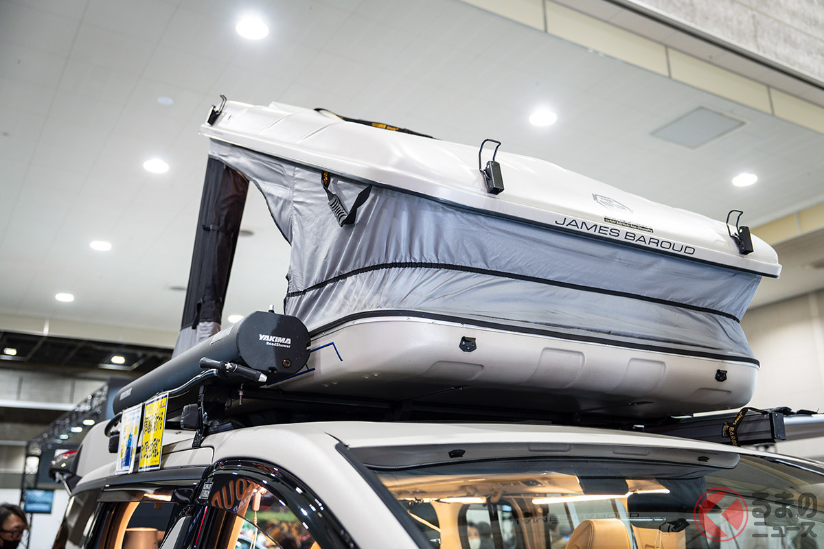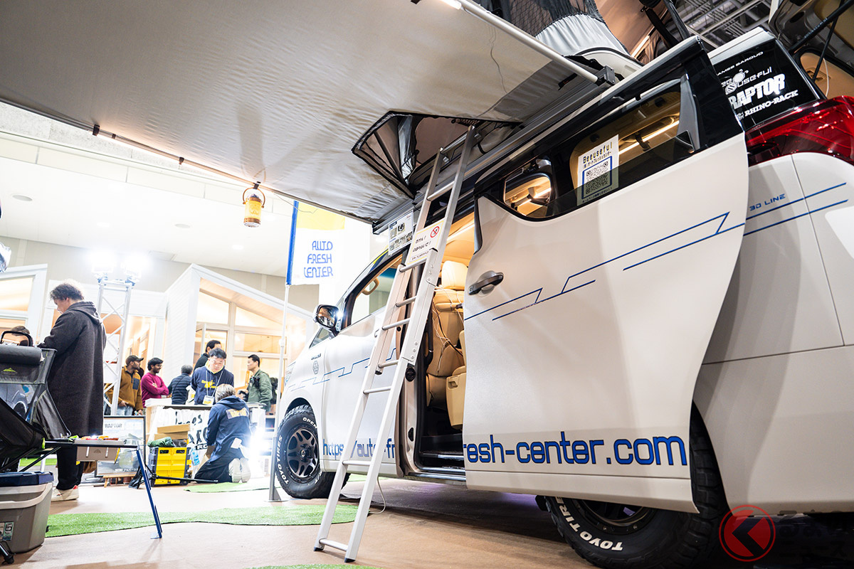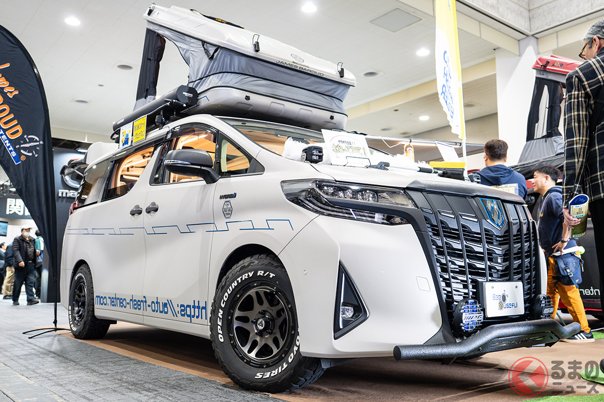 トヨタの高級車「アルファード」の“ゴツゴツ”キャンピングカーがスゴい! サンルーフから出入りできる斬新ルーフテント搭載! 車中泊も快適なビーユースフルの“カスタムミニバン”とは!