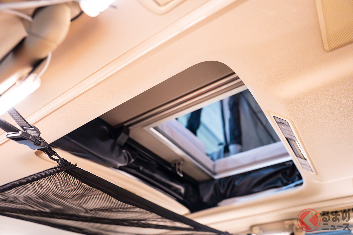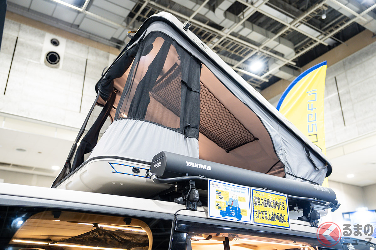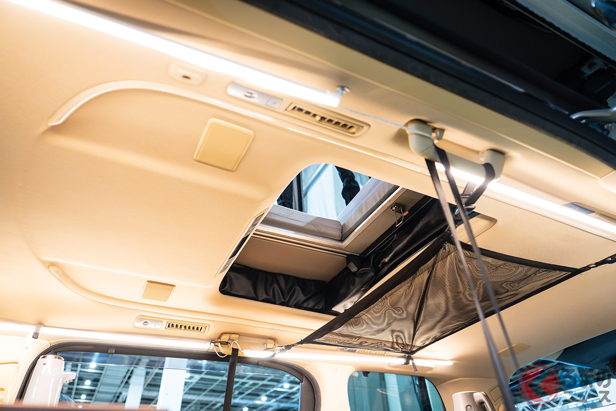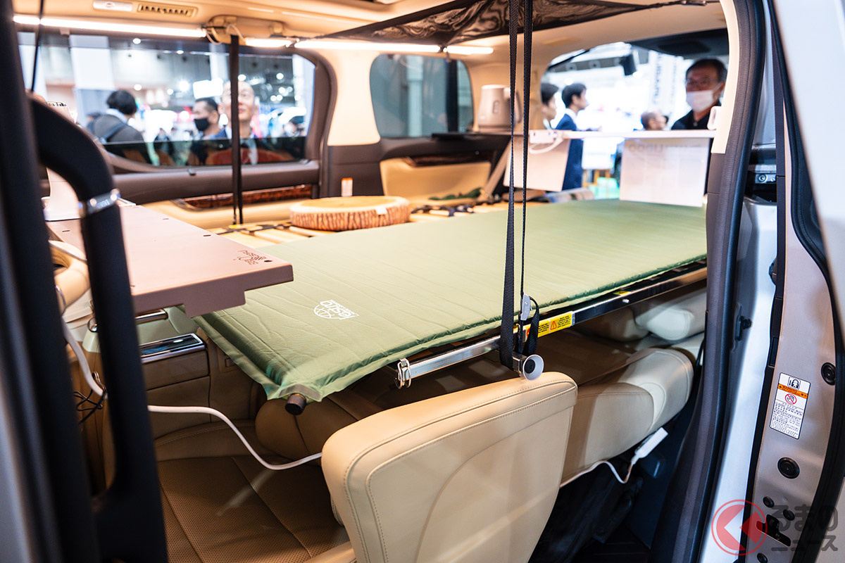 トヨタの高級車「アルファード」の“ゴツゴツ”キャンピングカーがスゴい! サンルーフから出入りできる斬新ルーフテント搭載! 車中泊も快適なビーユースフルの“カスタムミニバン”とは!