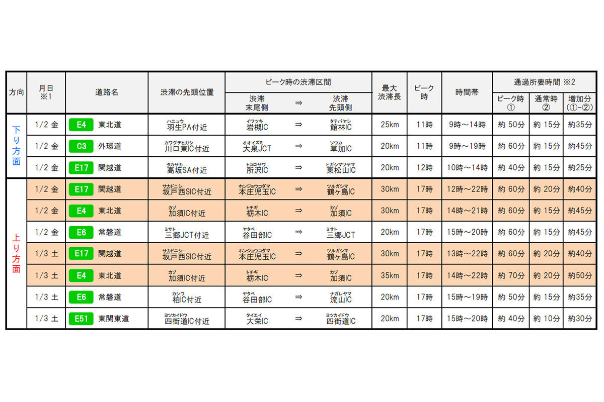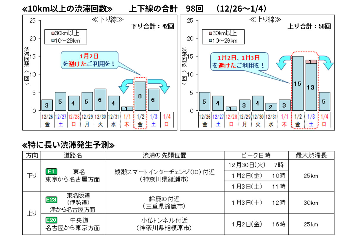 年末年始はふるさとや行楽地で過ごす人たちで高速道路が渋滞します。ピークを迎える日、混雑が予想される時間帯などを確認しておきましょう。