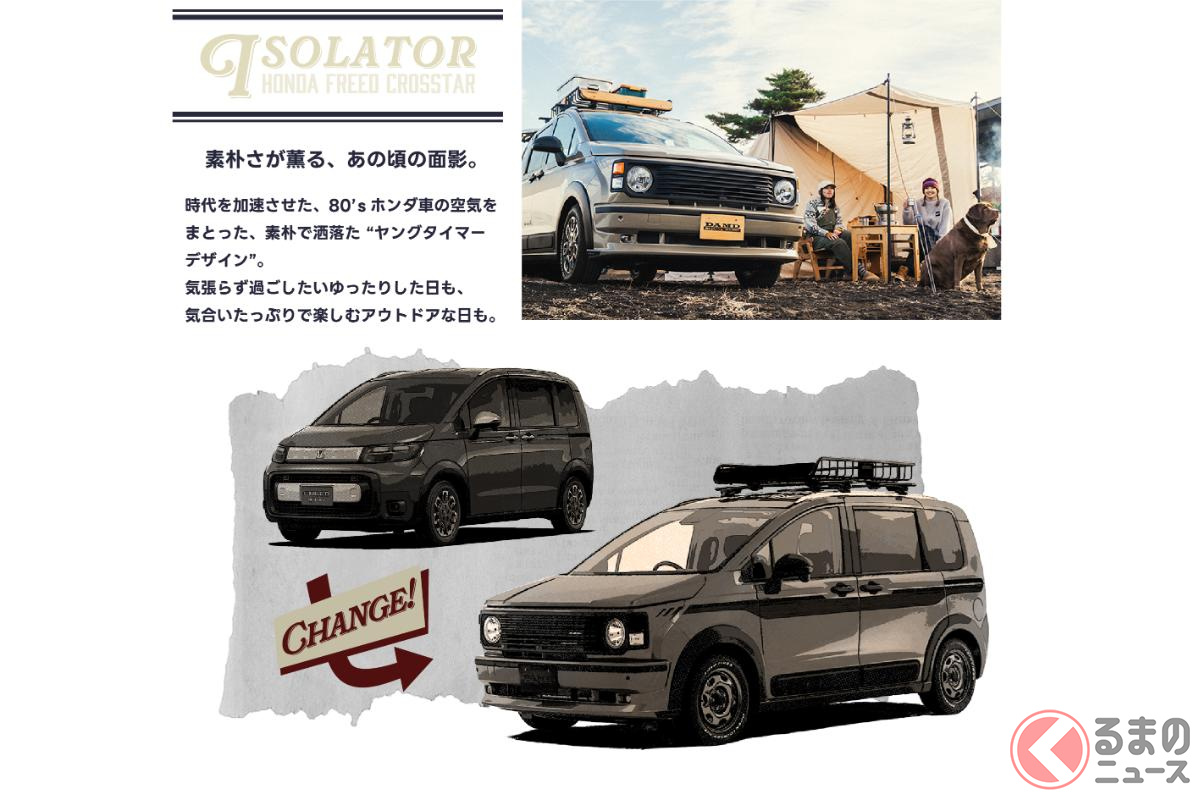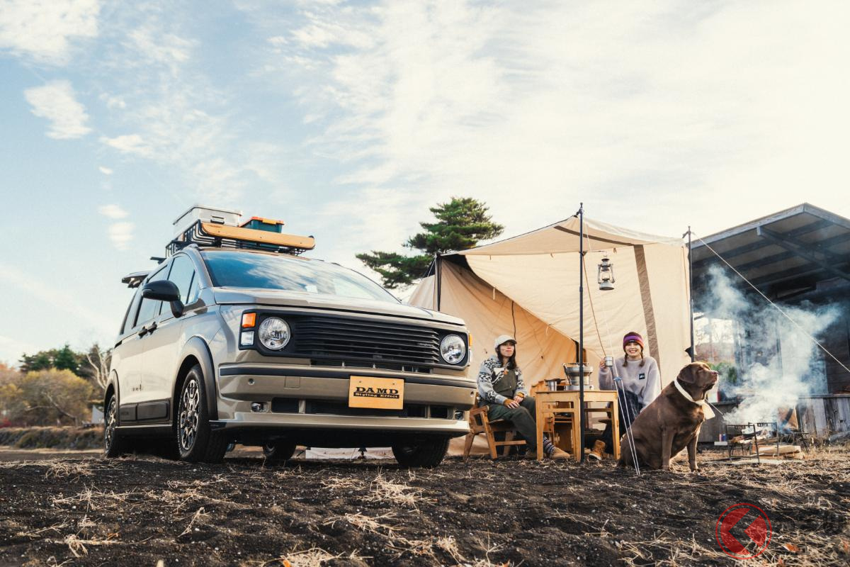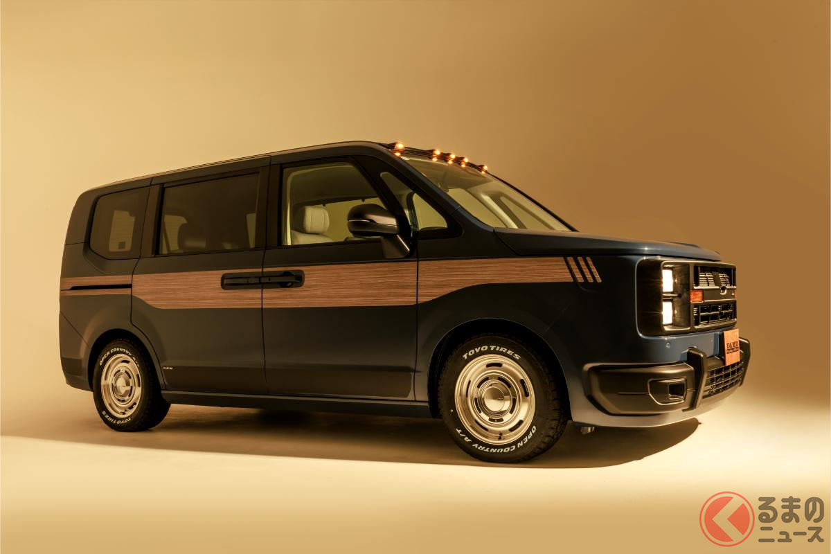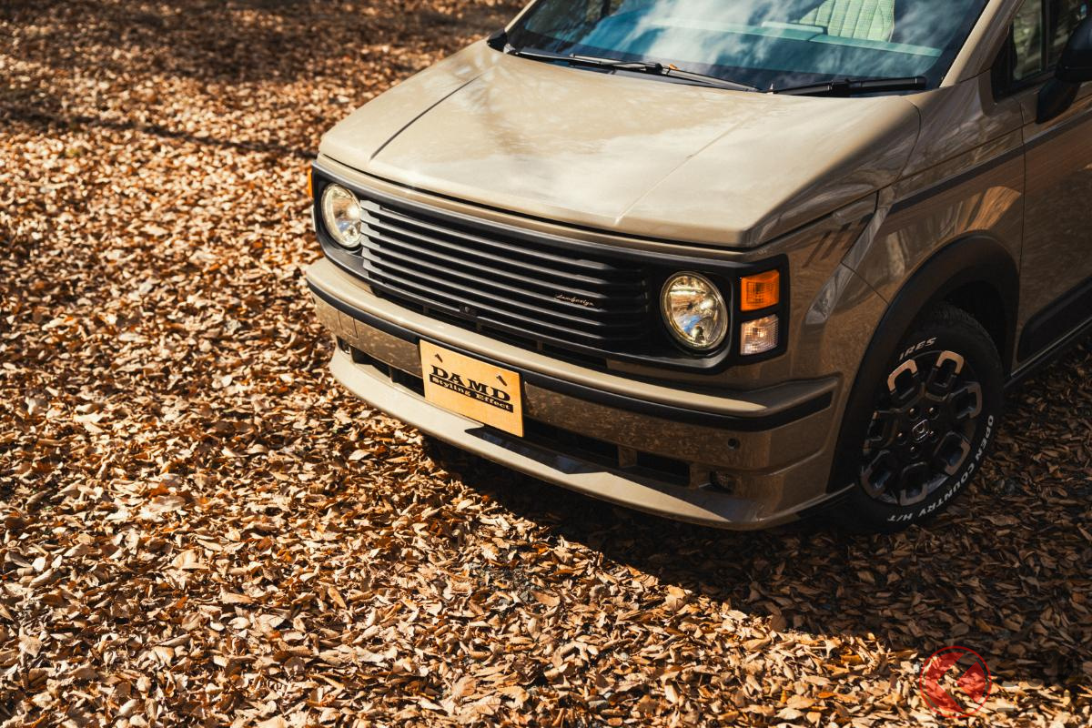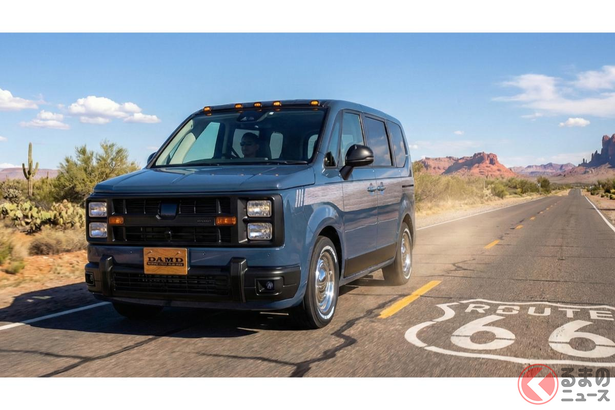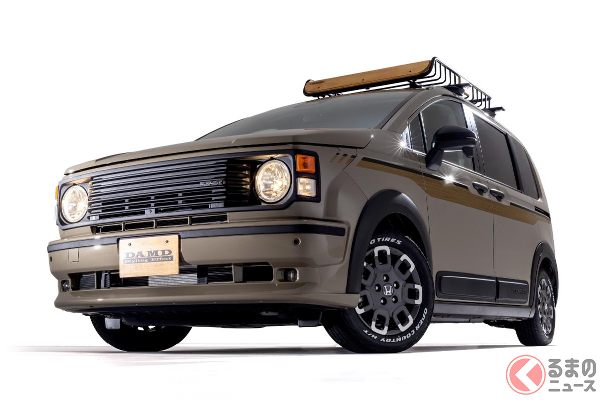 ホンダ最新「ステップワゴン」超レトロな“ワイルド仕様”初公開! 古き良き「角目4灯ライト」×カクカクボディ採用した斬新「3列ミニバン」がスゴイ! DAMD「ステップワゴン レゾネーター」発表!