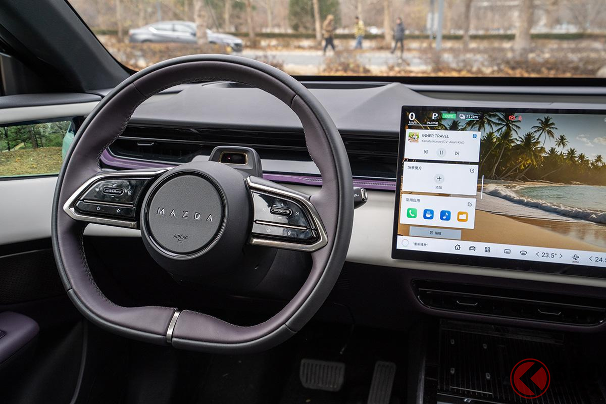 2025年9月、マツダが中国で発売した新型BEV「EZ-60」に試乗した。長安汽車との共同開発によるSUVで、全長4850mmの堂々たるボディを持つ。26インチ超の巨大画面や斬新な空力設計など見所満載だが、マツダファンが気になる「走り」や「内装」の仕上がりはどうなのか。その実力を現地の公道で確かめた。