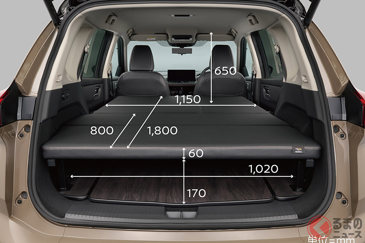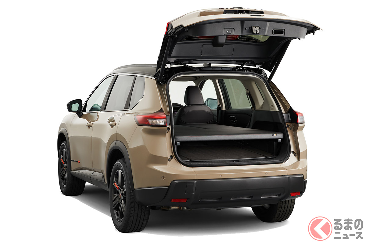 日産「“車中泊”エクストレイル」発表! 巨大ベッド搭載でめちゃ快適に寝られる&荷物も積める実用モデル! タフ顔がカッコいい新たな「ロッククリーク マルチベッド」26年2月発売へ!