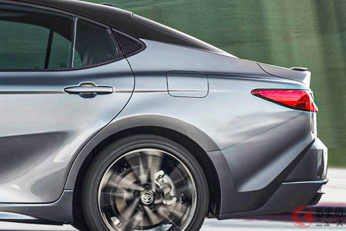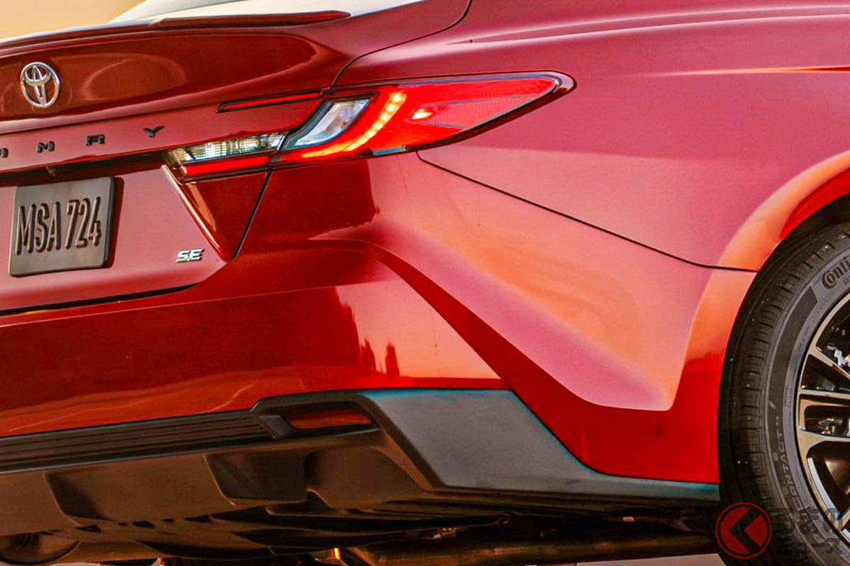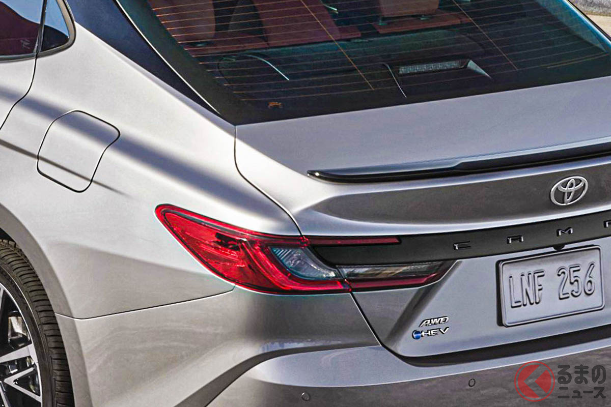 約2年ぶり復活!? トヨタ新型「セダン」まもなく登場! 約225馬力&「最新サメ顔」の「FF最大・最上級モデル」! リッター22km走る「カムリ」が販売店でも話題に
