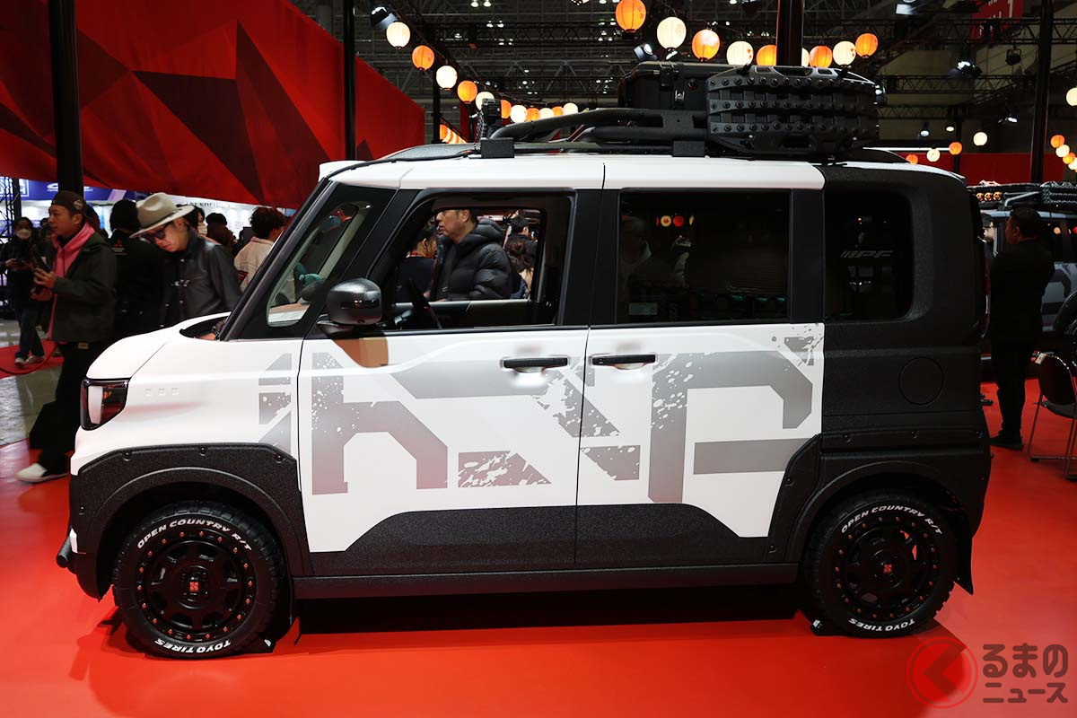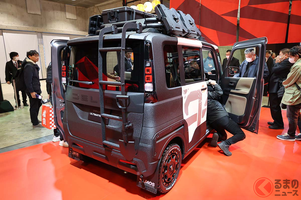 三菱「新デリカミニ アルティメットギア」初公開! ゴリゴリ「ラプター塗装」&20mmリフトアップで悪路もOKです! 屈強すぎるカスタムを施した「タフ仕様」をTAS26で披露
