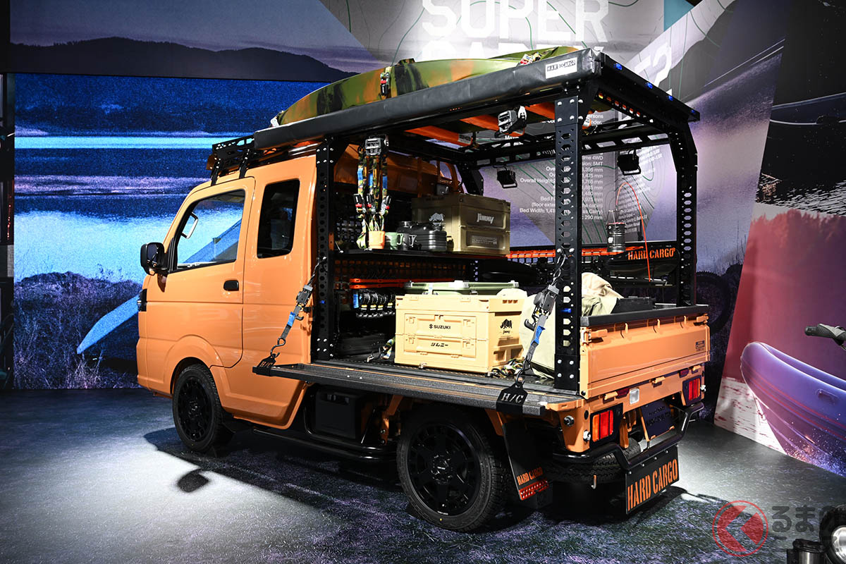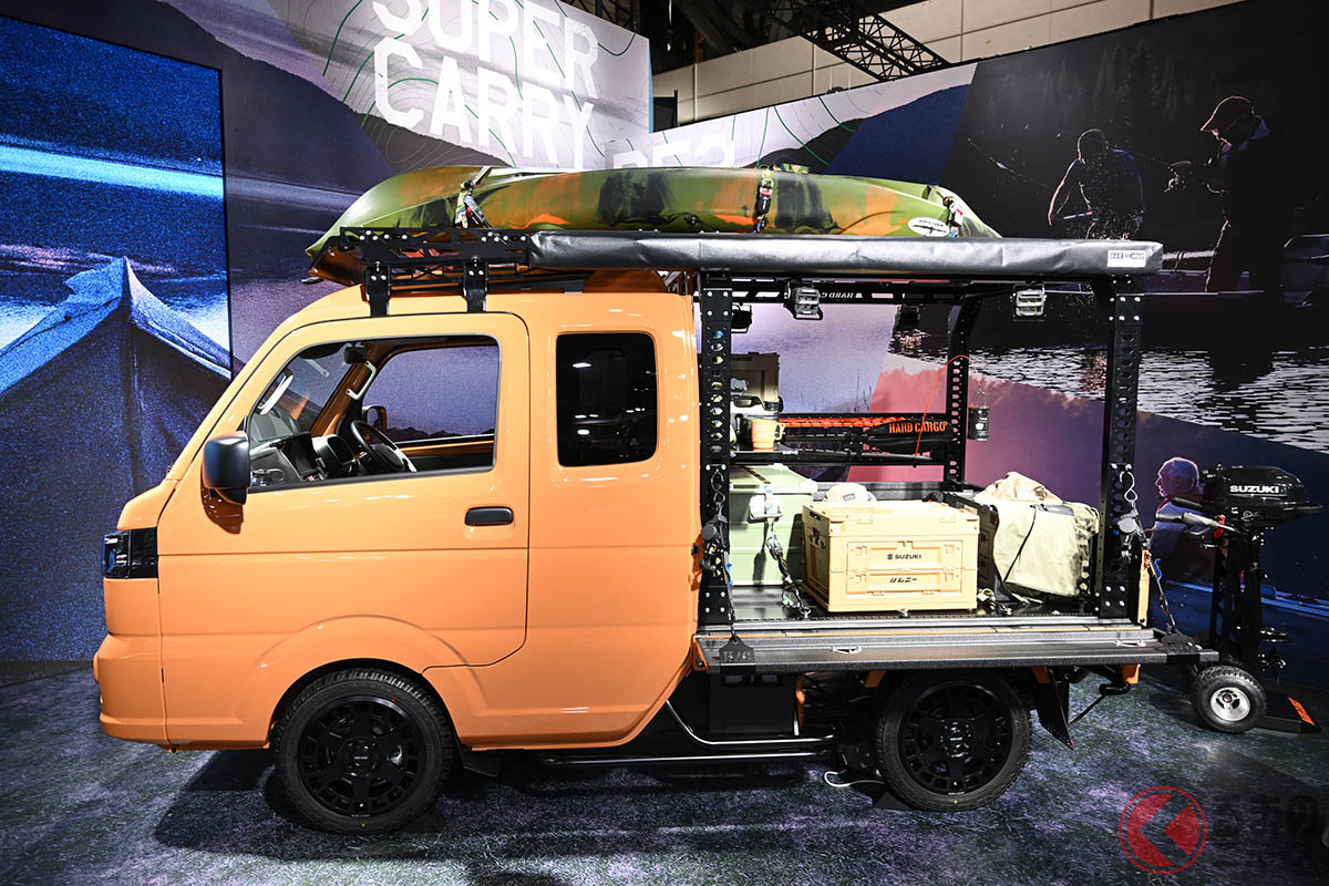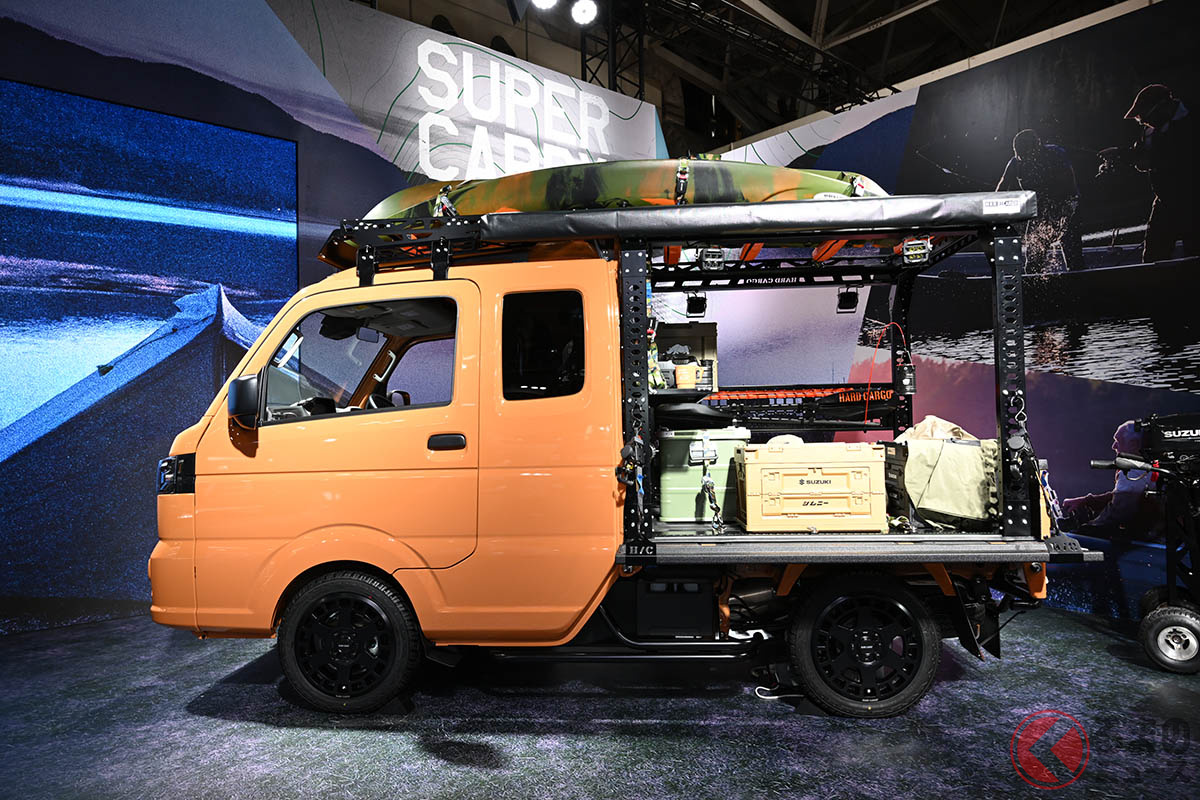 スズキは、2026年1月9日から11日にかけて開催されている「東京オートサロン2026」に、軽トラックの「スーパーキャリイ」をベースとした「SUPER CARRY WORK & PLAY PRO(スーパーキャリイ ワーク&プレイプロ)」を出展しました。