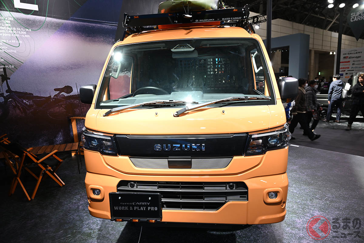 スズキ「“新”軽トラSUV」! 大刷新した “ワル顔”な「11代目」が「仕事とアソビで拠点」になる? 「SUPER CARRY WORK & PLAY PRO」登場!