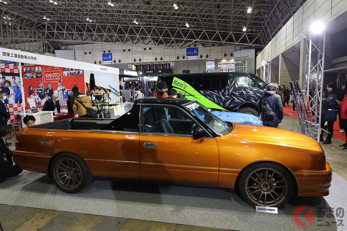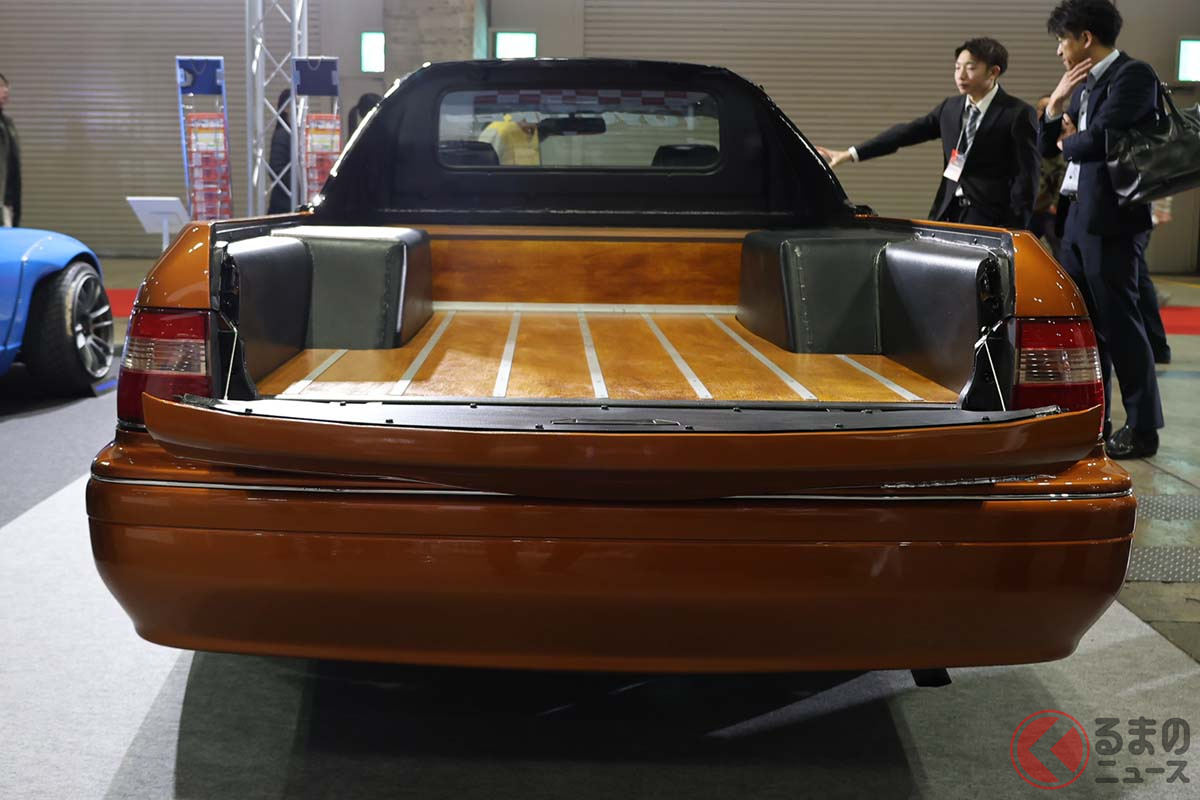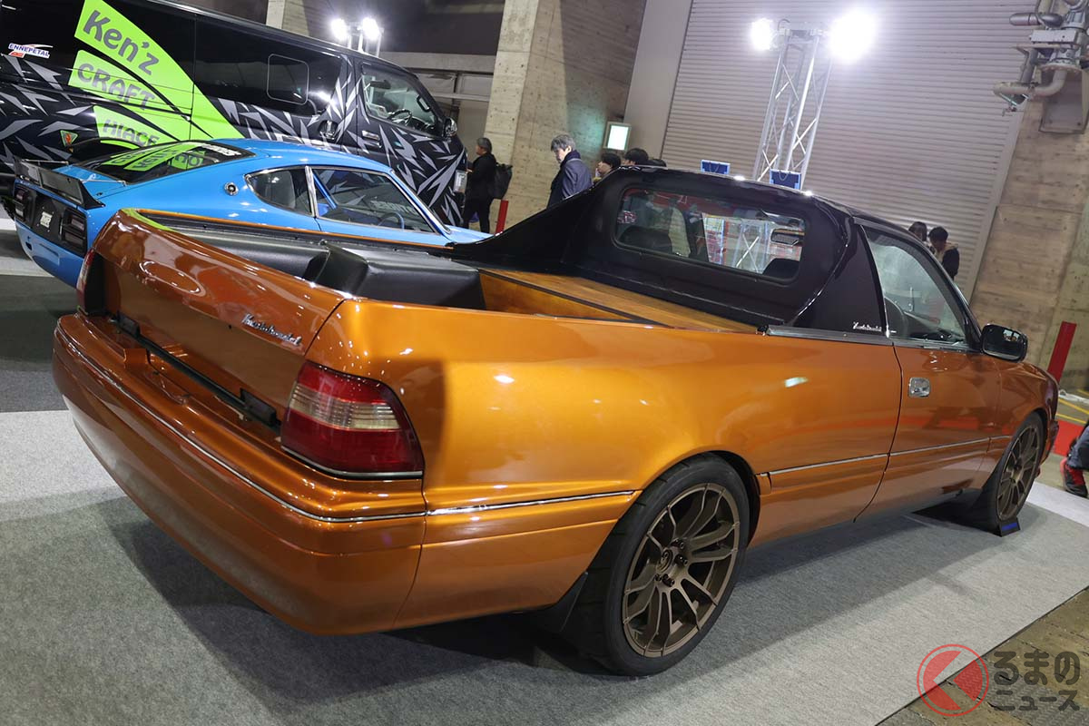 トヨタ斬新「クラウン“トラック”」公開! 精悍「丸目4灯“グロリア”顔」&「エルカミ風」テイストを融合! シャレの効いた高い完成度のカスタムカー「エル関東ミーノ」をTAS2026で披露