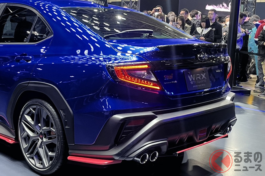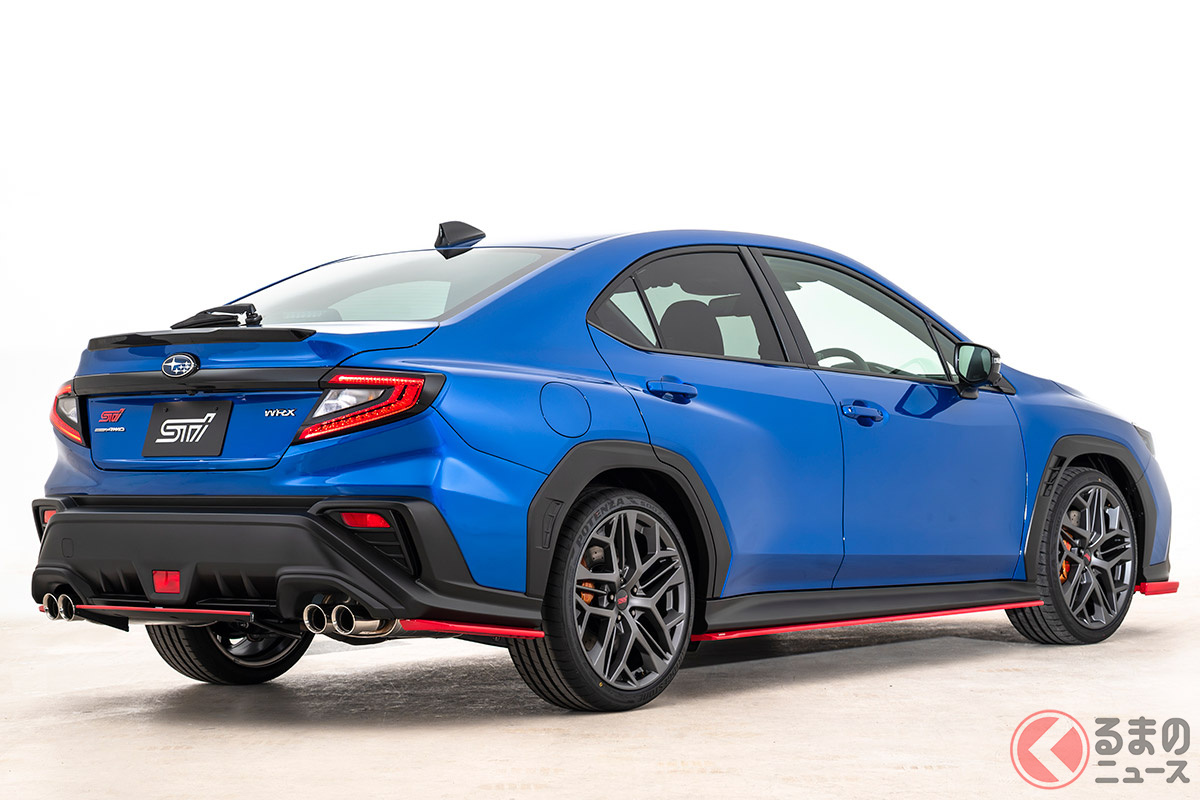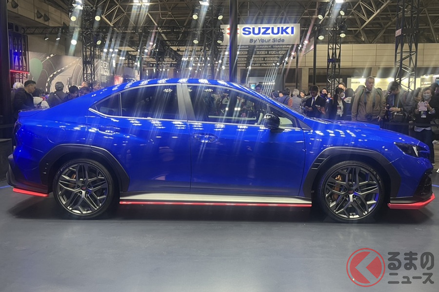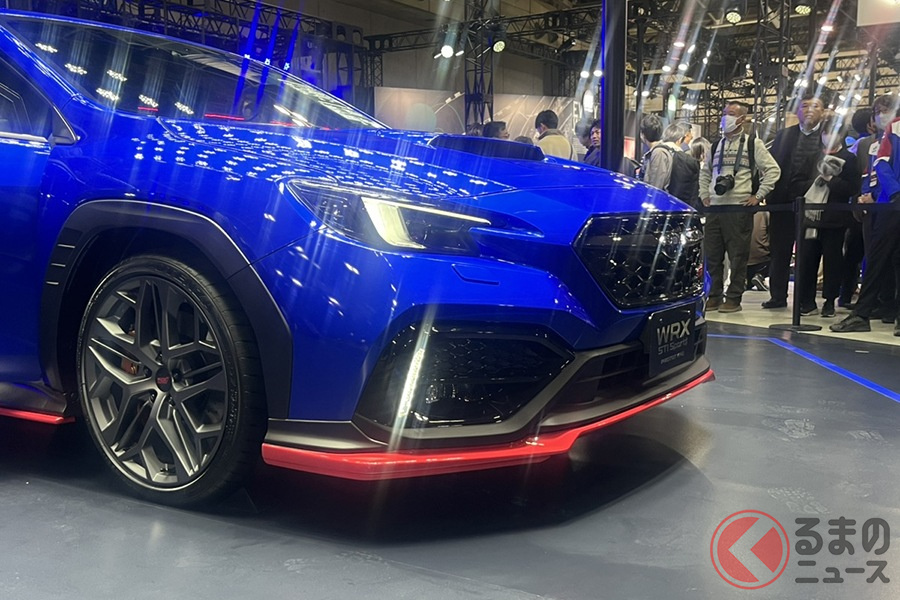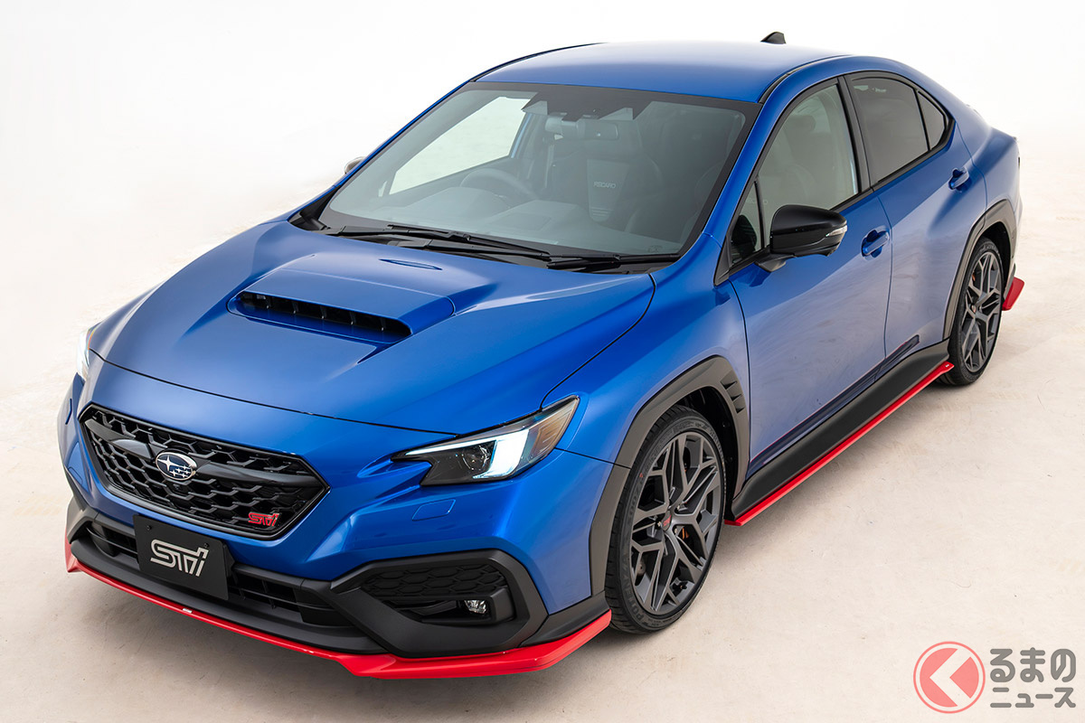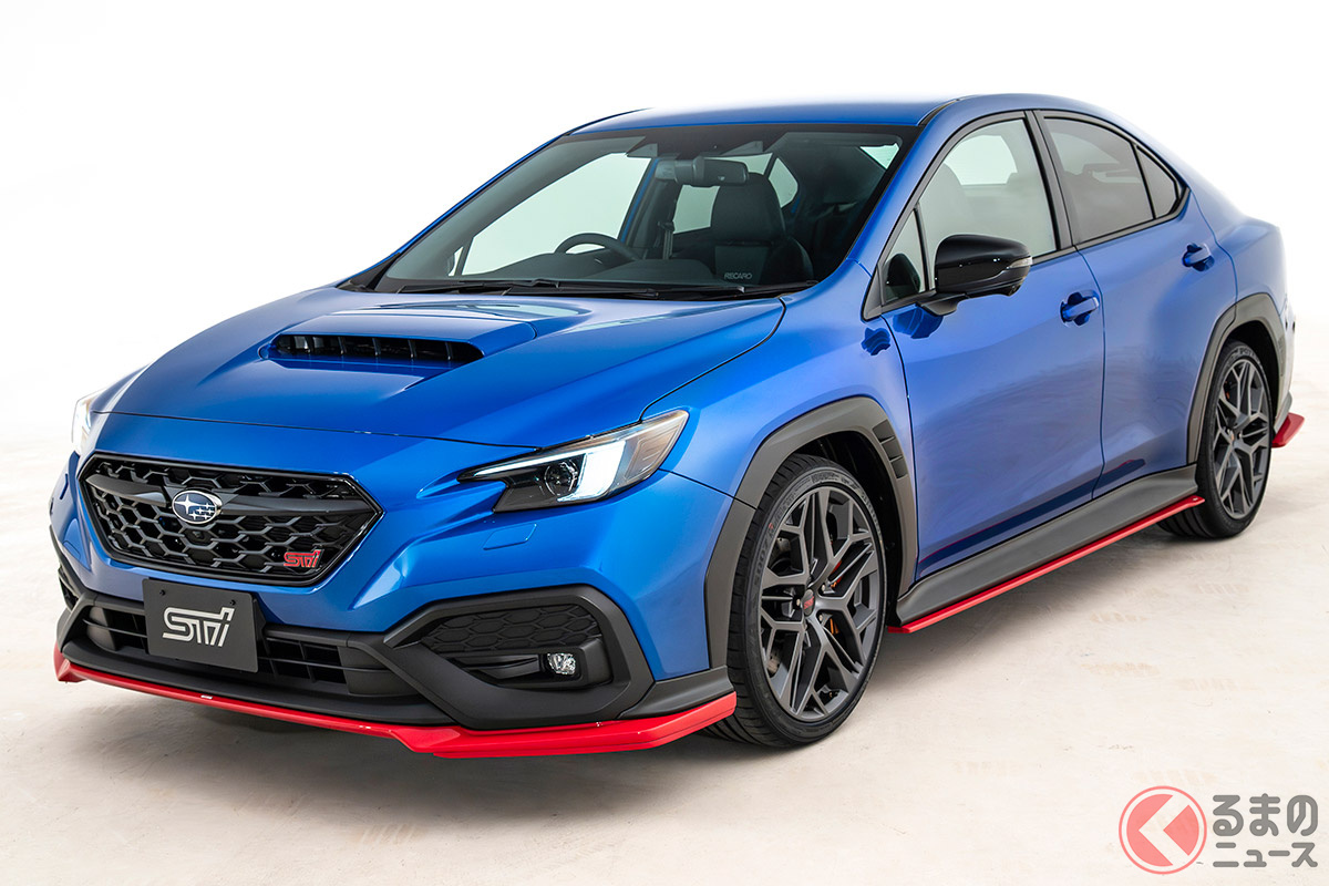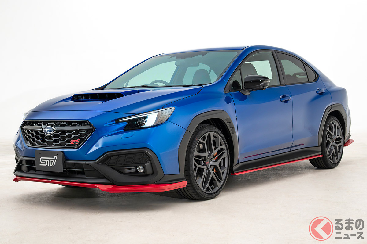 スバル「WRX STIスポーツ#」世界初公開! 待望の「6速MT」初搭載×専用パーツ&チューニング施した「スポーツセダン」! 26年春ごろ発売へ!