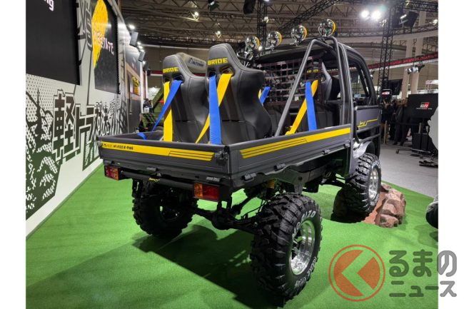 特徴的なのは、荷台にも2脚のシートが備えられ、4人乗りとなっている点。もちろん公道走行を想定しているわけではありませんが、このシートでの乗車体験はかなり“楽しそう”です。