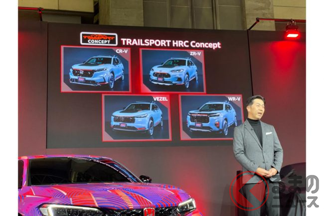 さらに、国内の主力SUVであり2月発売予定の新型「CR-V」や「ZR-V」「ヴェゼル」「WR-V」の4車種についても、力強さと冒険心を感じさせるデザインに刷新した「トレイルスポーツ HRCコンセプト」を一挙に公開しました。