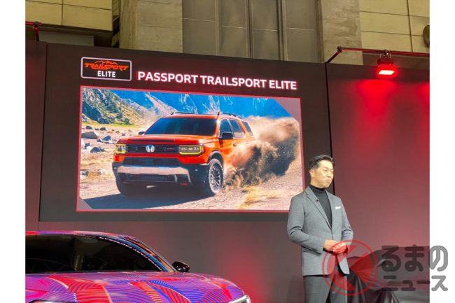 その象徴として、北米で販売中の新型オフロードSUVの上級グレード「パスポート トレイルスポーツ エリート」を参考出品車として日本初公開。ボディサイズが全長4841mm×全幅2019mm×全高1856mm(米国モデルの値)という、かなり巨大な車体のモデルです。