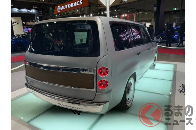 フロントフェイスでは、丸目四灯のヘッドライトと大きなメッキバンパーが採用され、ケンメリの愛称で親しまれた日産「スカイライン」(4代目・C110型)などをほうふつとさせる昭和テイストの懐かしいデザインに。リアにはウッドパネルもあしらわれ、レトロな雰囲気を高めています。