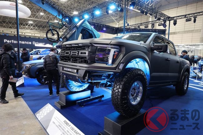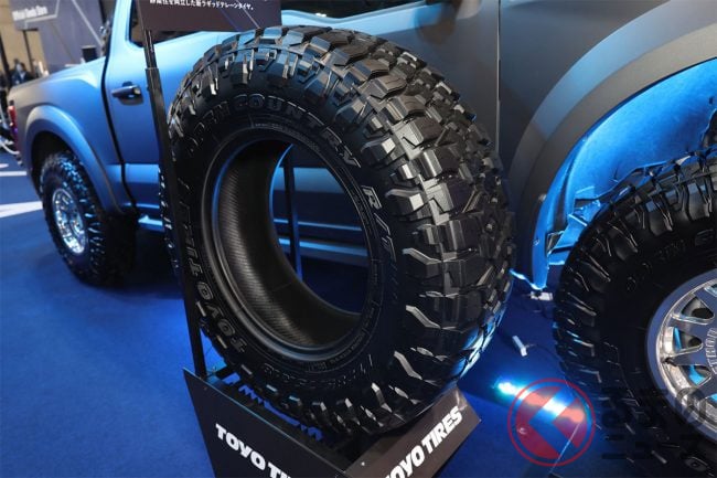 会場には「OPEN COUNTRY」および「PROXES」を装着した6台のデモカーが展示され、アメリカで高い人気を誇るFORD F-150 RAPTORは日本未発売の「OPEN COUNTRY R/T PRO」を装着。