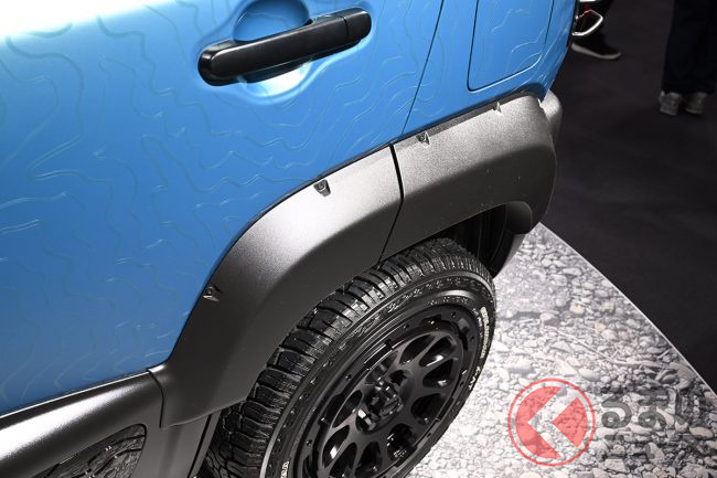 足元にはブロックパターンのタイヤとタフなホイールを組み合わせ、悪路走行を想起させるスタイルを構築。さらにテールランプガードや牽引フックなど、細部までデザインと機能の両立が図られています。