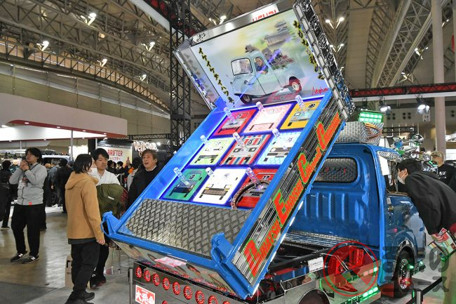 その中でもブース内で特に異彩を放っていたのは、「ハイゼットトラック PTOダンプ 大発命(ダイハツメイ)」です。