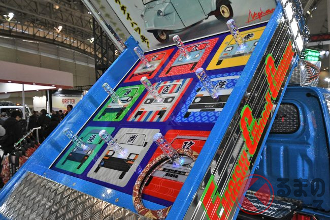 大型トラックにド派手でヤンチャな装飾を施し、昭和の時代から今もなおコアな人気を集め続ける「デコトラ(アートトラック)」をほうふつとさせる、いわば“令和の軽デコトラ”といった成り立ちです。