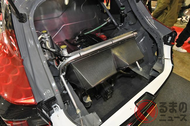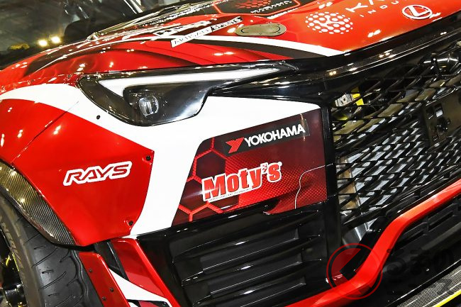 中ホール4にブースを構える「風間オートサービス」では、“世界初のSUVドリフト車両”をうたう競技専用のレクサス「LBX MorizoRR/Drift」を公開しました。