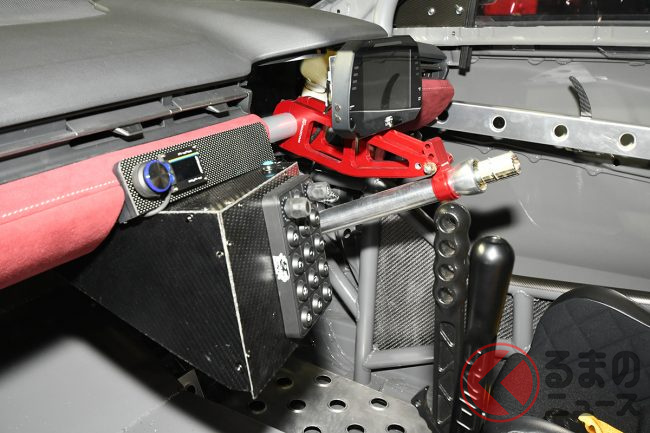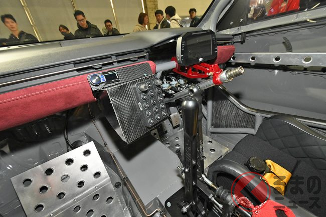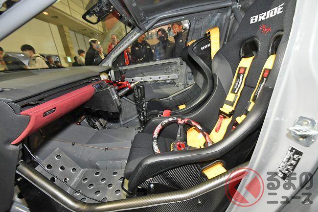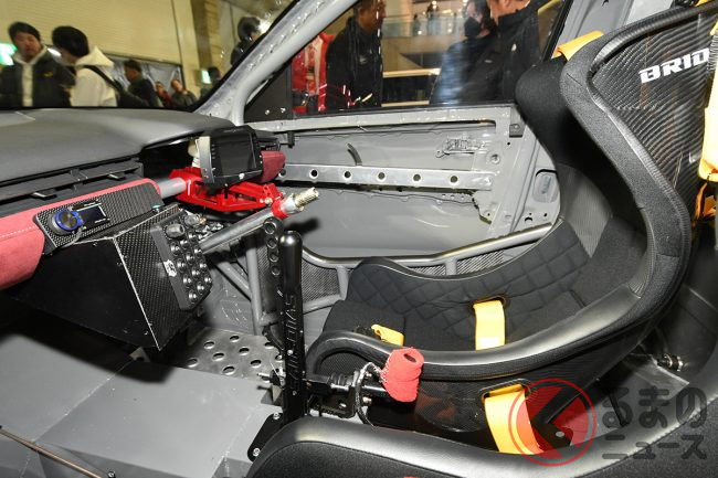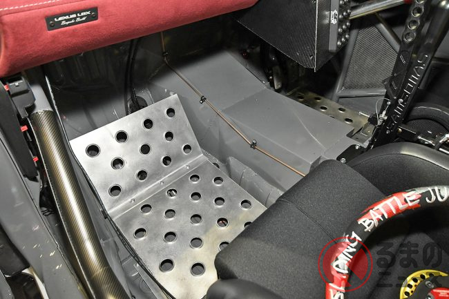 ドリフトでは当然、より低いシートポジションで重心を下げるのですが、LBXで単純にシートを下げると前方がまったく見えなくなるのです。このあたりは、「乗り手(ドライバー)と相談しながら要調整です」とのことでした。