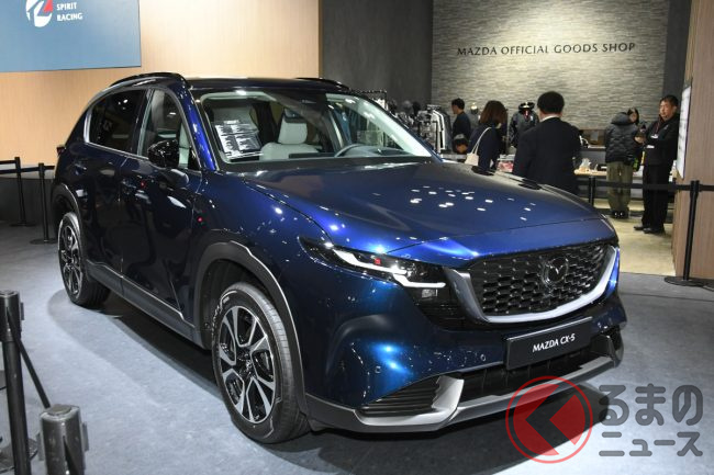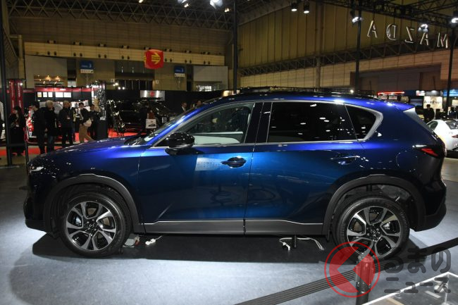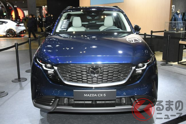 マツダは2026年1月9日、「東京オートサロン2026」の会場にて新型「CX-5」(欧州仕様)を展示し、新たな塗装色「ネイビーブルーマイカ」を初公開しました。