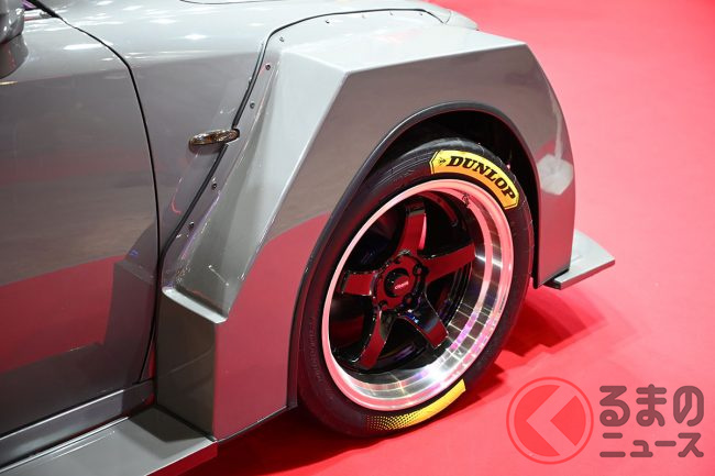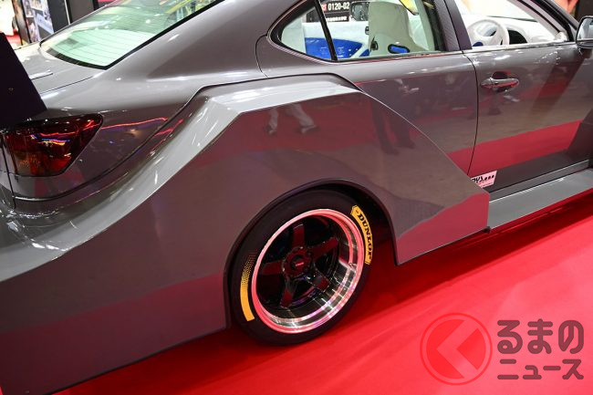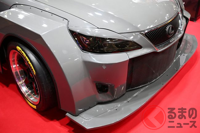 2007年式と「平成生まれ」の初代(海外では2代目)レクサス「IS」をベースに、昭和50年代に活躍したレースカテゴリのひとつである「シルエットフォーミュラ(スーパーシルエット)」風の箱型オーバーフェンダーを追加しており、迫力ある姿に仕立てられています。