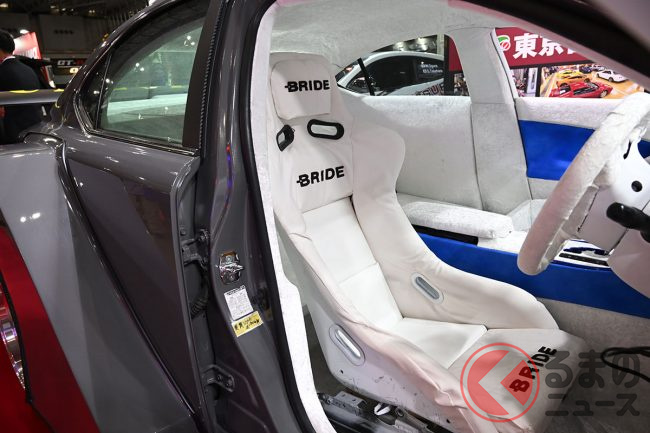 しかし、無機質な空間ではなく、ダッシュボードのみならずBRIDE製のフルバケットシートや、ステアリングホイールにもチンチラ素材を使用。