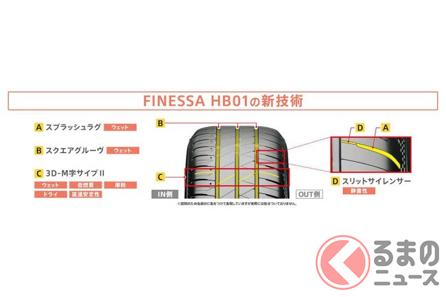 ブリヂストンの新タイヤブランド「FINESSA」始動! 第1弾「HB01」は高いウエット性能と静粛性を両立