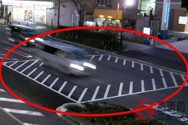 「教習所で習うはずの基本」「意味を忘れたなら免許を返納すべき」と厳しい意見も! 道路にある「謎の斜線ゾーン」の意味とは? 後続車のドライバーからクラクションでトラブルも