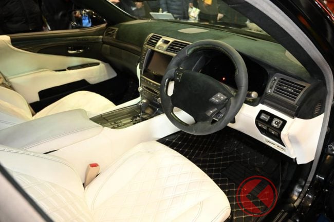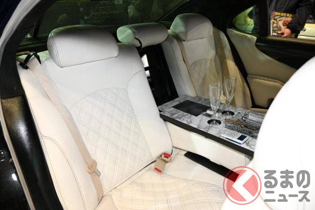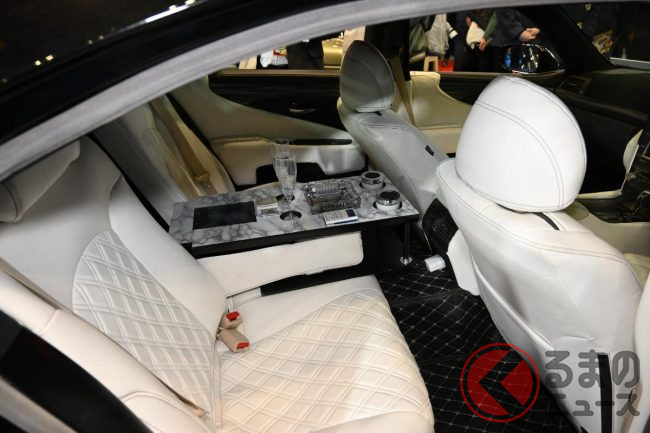 斬新「ヴェルファイアセダン」初公開に反響殺到! 「本気で買いたい」「欲しいわ」「“光る豪華内装”がたまらない」の声も! 「V8エンジン×FR」で高級感ハンパないレクサスLSベースのNATS「大型セダン」に熱視線!