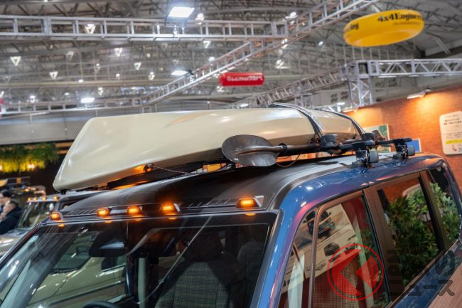 また、ルーフ前端には主にアメリカの大型ピックアップトラックでお馴染みの灯火装備「デューリーマーカー」を装着、イグニッションオンで連動して点灯することで、よりアメ車チックな雰囲気の演出に一役買っています。