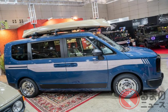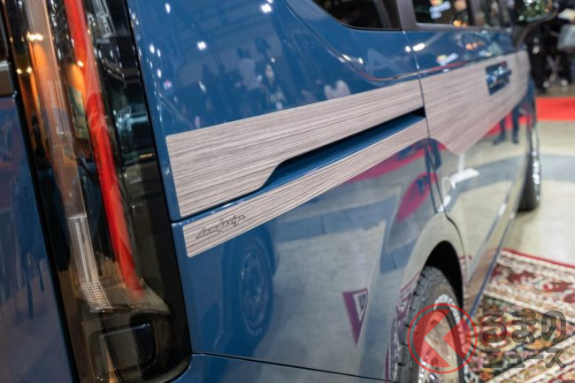 ホンダ最新型「ステップワゴン」“角目4灯仕様”初公開! カクカクボディ&旧車デザインの「レゾネーター」! 木目風パネルもイイ「新ダムドモデル」登場