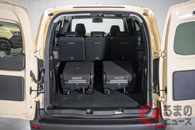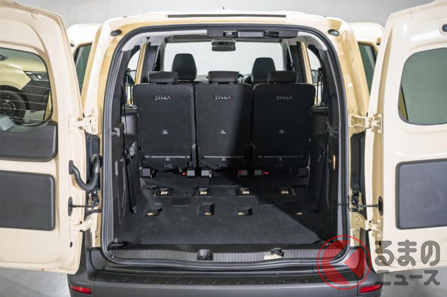 ラゲッジ容量は、7人乗車時で500L、3列目シートを取り外すと1340L。2、3列目を取り外すと最大で3050Lとなり、商用車ベースらしい広大なスペースが出現します。