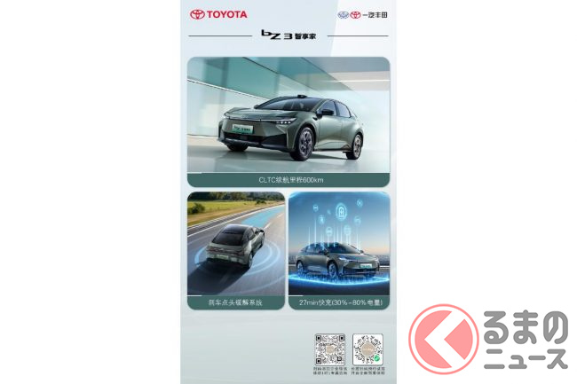 トヨタと中国第一汽車集団の合弁会社「一汽トヨタ」は2025年12月31日、セダンタイプのバッテリー式電気自動車(BEV)「bZ3」の新モデルにおいて、価格を期間限定で大幅に引き下げると発表しました。