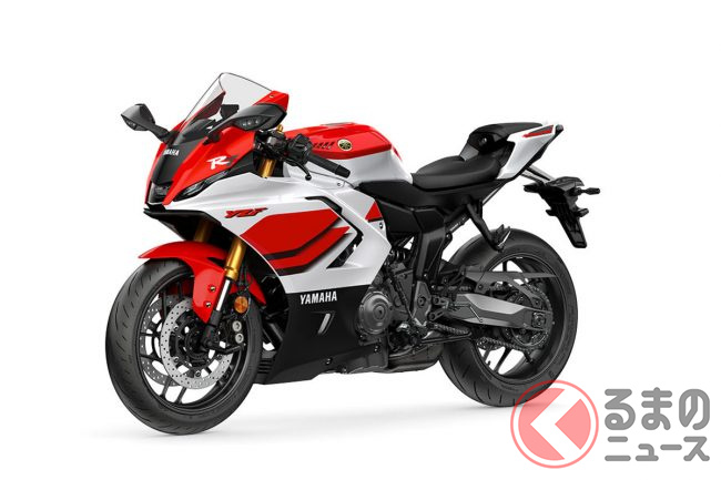 ヤマハが“黄金”に輝く「ゴールド音叉」エンブレム採用! めちゃ特別な「新YZF-R」発表に大注目! ファンなら懐かしい“赤×白”ボディで仕上げた「“70周年”記念モデル」がスゴイ!