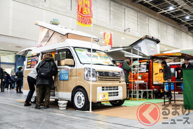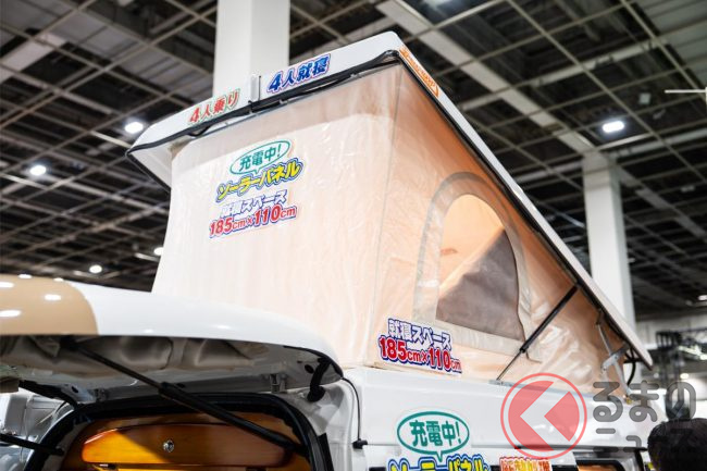会場には多彩な最新モデルやコンセプトカーなどが並びましたが、とりわけ来場者の視線を集めていたのが、オートワンのブースに展示された軽キャンパー「給電くんPOPUPルーフ」です。どのようなモデルなのでしょうか。