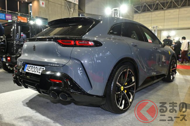 斬新「スポーティSUV」公開! “専用デザイン”&「オリジナルロゴ」で“イタリアの息吹を感じる”モダンな雰囲気がカッコイイ! 「クラウンスポーツ」ベースのケーファクトリー「AERO OVER P639e」実車展示!