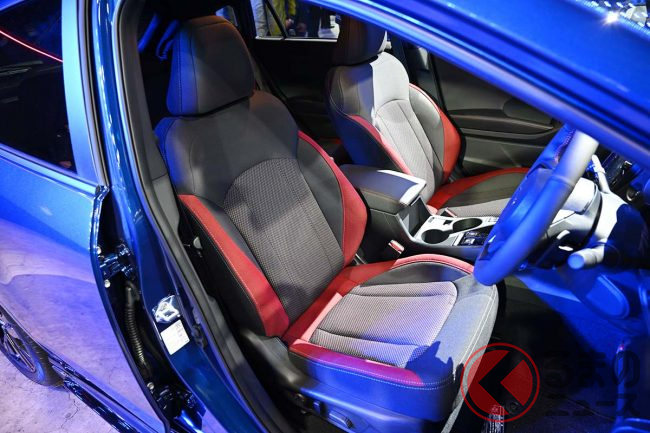 インテリアでは、STI風味を強めるべく、ステッチやトリムに赤系の色味を採用。シート生地を、ジャージとトリコットのコンビシートとし、色味もブラック/レッドの2トーン化。ステッチもシルバー&レッドとなります。さらに、レッドステッチのシフトブーツやカーボン調のインパネ加飾、ブラック化されたピラートリムなどの採用で、スポーティさを際立てています。さらにナビゲーション機能も標準化しており、利便性も向上されています。