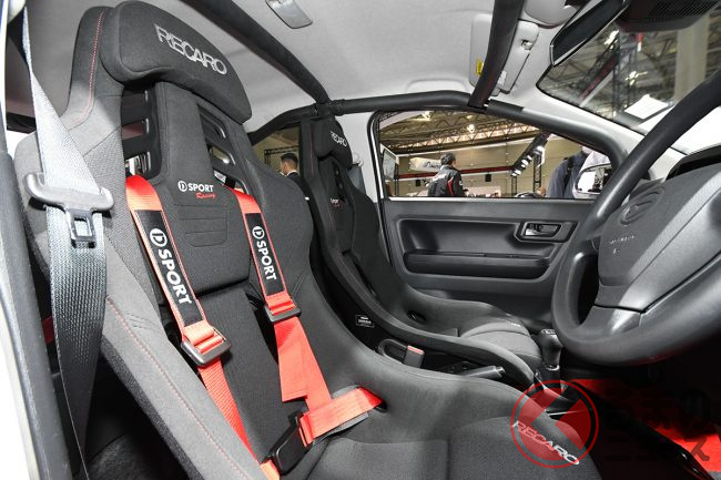 足回りにはD-SPORT製のスポーツサスペンションが奢られ、さらに室内には乗員保護とボディ剛性の向上を目的とした6点式ロールケージを標準装備するなど、その内容は文字通り「ガチ仕様」そのものです。