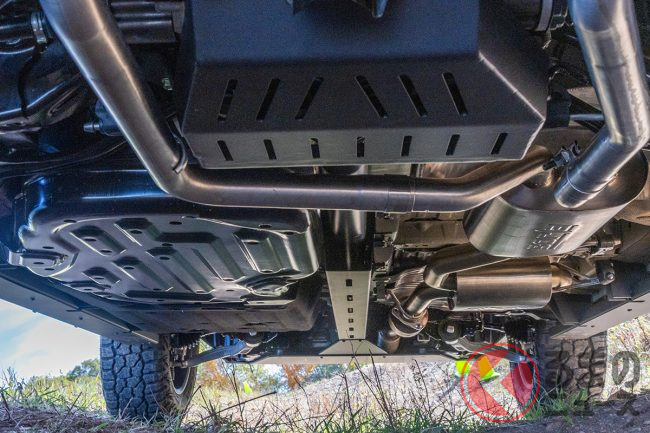 アルミ製スキッドプレートの延長に加え、センターベアリング、プロペラシャフト、リアドライブユニットといった主要コンポーネントを守るアンダーボディプロテクションを強化。新設計のフロント・リアダンパー、専用エキゾーストシステム、60mmのサスペンションリフト、そしてタイヤ径の1インチ拡大により、地上高を大幅に向上させています。