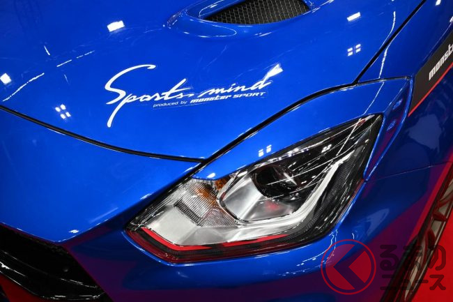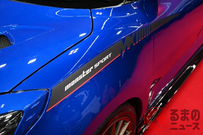 まず目を引くのは、ボンネットに施されたダクトと、「Sports mind produced by MONSTER SPORT」のロゴデカールです。鋭い眼光のヘッドライトと相まって、ただならぬ雰囲気を醸し出しています。