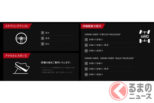 なおこのエンジントルク&出力アップにより、2024年3月発表の進化型GRヤリスと同等以上の出力が可能となるようです。